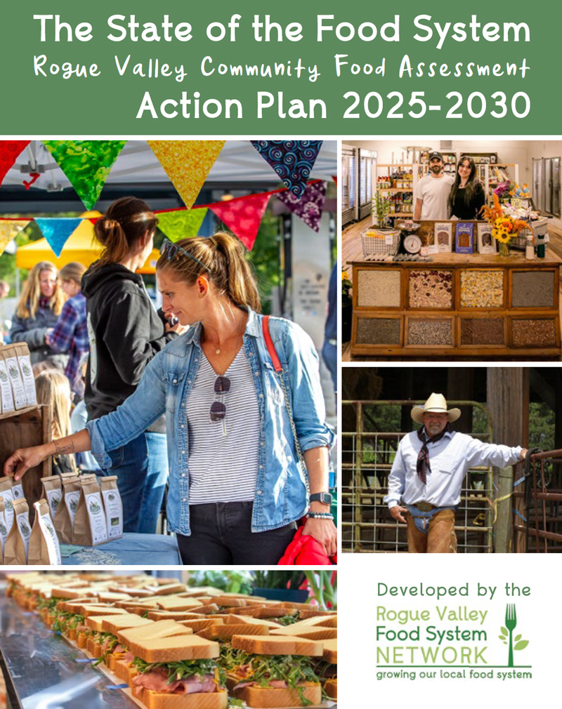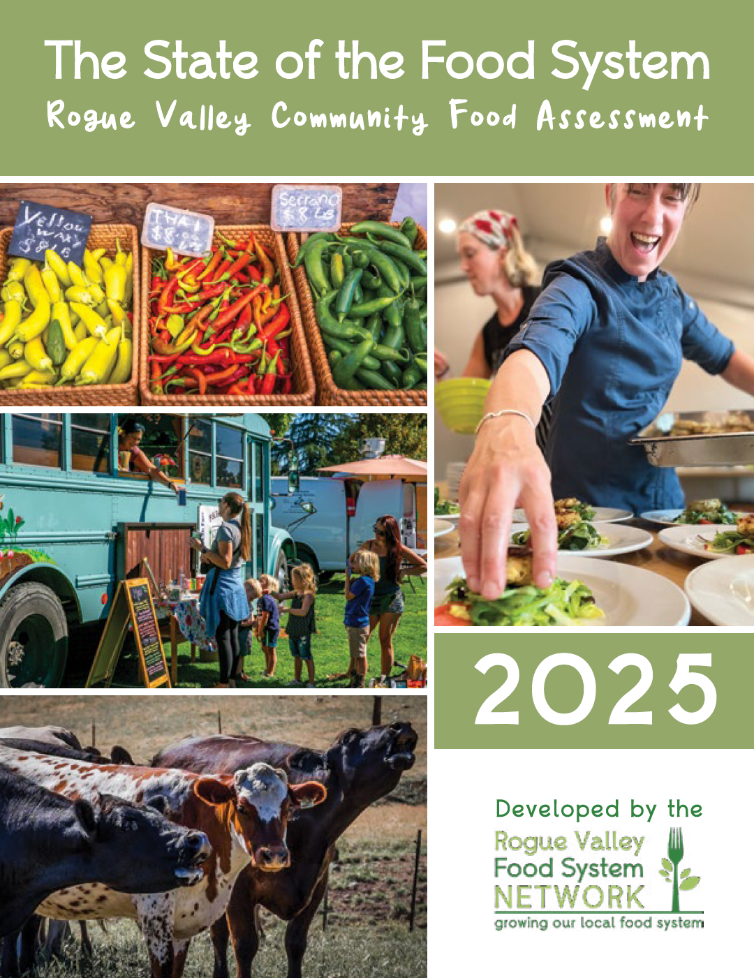 From 2020-2024, the Rogue Valley Food System Network, in collaboration with a wide range of community organizations, businesses and government agencies, led a three-year food assessment of Jackson and Josephine County. The results of the research can be found in the 2025 State of the Food System Report – the Rogue Valley Community Food Assessment.